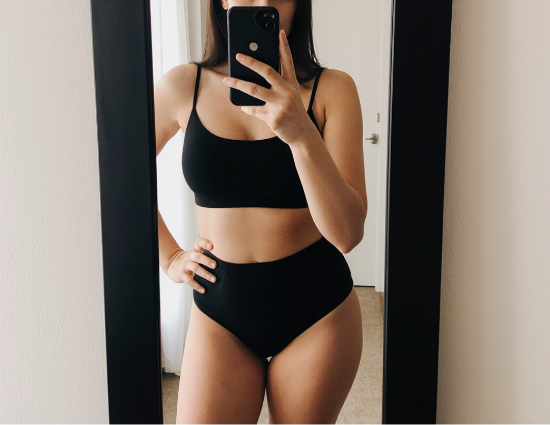 Prends ta taille habituelle de culotte. Si tu es entre deux tailles, choisis la plus grande pour plus de confort pendant le sport.